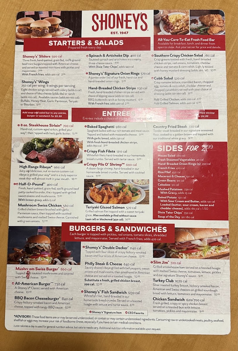 Welcome to Shoney's - Fayetteville, a beloved dining destination nestled at 1235 Huntsville Hwy, Fayetteville, TN. This charming eatery offers a delightful mix of comfort food that appeals to both the young and the young-at-heart. Renowned for their breakfast bar, the menu also boasts delicious country-style cooking, including fried chicken, pot roast, and a fresh salad bar featuring crisp veggies.